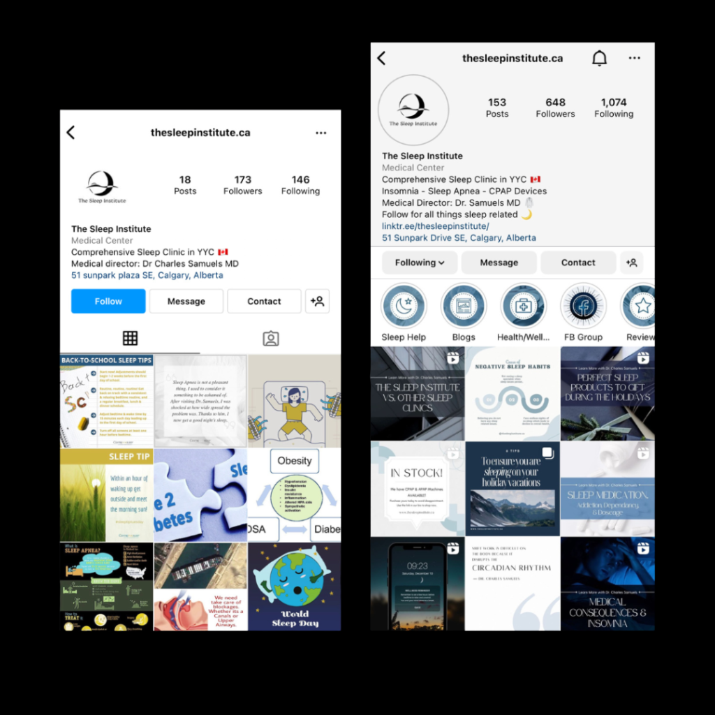 The Sleep Institute, a comprehensive sleep clinic in Alberta, Canada, was struggling to reach its target audience on social media. The company lacked a strong social media presence and needed to increase their reach to educate the public on the importance of sleep and the various sleep-related issues. The company approached our marketing agency, seeking help in growing their social media platforms.